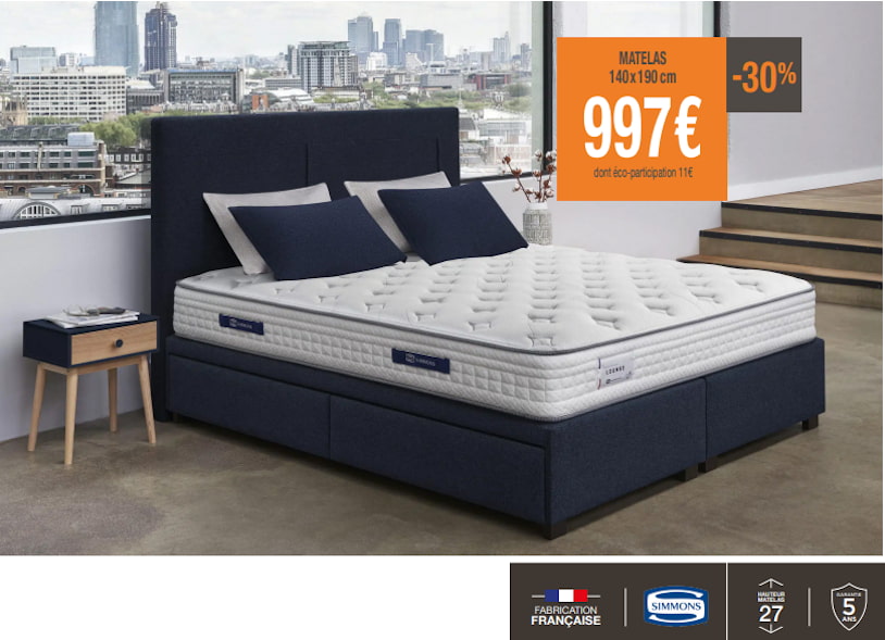 Profitez de notre opération spéciale literie et bénéficiez de remises jusqu’à -30% sur une sélection de matelas, sommiers et ensembles literie.